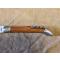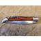 Couteau Laguiole "Royer Saint-Flour" (fabrication G David de belle qualité pour ce commerçant), modèle avec manche en bois de rose; mitres maillechort lame en 12 C 27, tire-bouchon. Guillochage sur le ressort, les platines et la lame. Article neuf de belle fabrication traditionnelle française provenant d'un magasin ayant fermé ses portes.