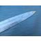 La lame droite symétrique à double tranchant et une pointe en forme de feuille de sauge. long 48,7 cm et de 4,6 cm au talon. Soie de 15,8 cm. Elle est ornée de trois pans creux : deux juxtaposés et un disposé dans l’axe.