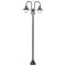 Lampadaire de jardin E27 220cm Aluminium 2 lanternes Vert foncéCe lampadaire de jardin à 2 lanternes convient à tous ceux qui souhaitent éclairer leur jardin avec un éclairage fonctionnel, sûr et d'ambiance et pour qui la qualité et la durabilité sont des critères essentiels. Le lampadaire d'extérieur de haute qualité est fabriqué en aluminium résistant avec abat-jour en PVC pour de nombreuses années d'utilisation. Le lampadaire de jardin a 2 douilles E27. Veuillez noter que les ampoules ne sont pas incluses dans la livraison. Cet appareil n'est pas destiné à être utilisé par des personnes (dont les enfants) dont les capacités physiques, sensorielles ou mentales sont réduites, ou qui manquent d'expérience et de connaissances, à moins qu'elles n'aient pu bénéficier d'une surveillance ou d'instructions concernant l'utilisation de l'appareil de la part d'une personne responsable de leur sécurité. Ce produit n'est pas un jouet. Ne laissez pas les enfants jouer avec l'appareil.