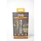 Les autres caractéristiques comprennent un indicateur de niveau de batterie, cinq niveaux de sortie plus un mode stroboscopique et une lunette de frappe dentée pour l'autodéfense.