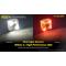 Elle dispose d’un mode blanc de 40 Lumens, d’un mode clignotant de la même puissance, un mode clignotant rouge rapide à 4 Lumens + mode lents rouges + un indicateur rouge de faible puissance.