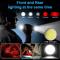 Feu avant 5 modes (faible/moyen/élevé/strobo/SOS). Feu arrière COB 5 modes (faible/moyen/élevé/rouge/rouge SOS).