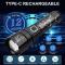 Cette lampe de poche LED rechargeable est équipée d'une puce LED XHP70.2 avancée, qui est stable et super lumineuse, 10 fois plus lumineuse que les ampoules ordinaires. Éclairez une pièce entière avec facilité et une distance de faisceau maximale de 700 mètres. La lampe de poche LED extrêmement lumineuse est fabriquée en alliage d'aluminium aéronautique de haute qualité, qui a subi un traitement d'oxydation spécial, résistant à l'usure et anti-chute.