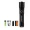 Lampe torche haute performance équipée d'une LED XHP50 (4 coeurs réels), idéale pour l'affût, la chasse, le camping ou les activités extérieures. Son faisceau zoomable éclaire jusqu'à 500 mètres et sa batterie rechargeable haute capacité assure une autonomie prolongée.