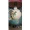 Très belle lampe à motifs floraux, restaurée : fil électrique neuf ainsi que l'abat-jour. Hauteur avec l'abat-jour 30 cm , largeur de la base 10 cm. La base est sans défaut.