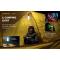 Une lampe de camping : le cône en silicone blanc inclus permet l'émission d'une lumière diffuse dans la tente de camping. Les lumières rouges et vertes accroissent les possibilités d'utilisation dans la tente et autour du terrain de camping. Peut être installée à la verticale.