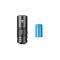 Alimentée par une batterie lithium-ion intégrée rechargeable via un port Micro-USB, accessible en dévissant la tête de la lampe.