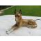 Ancienne lampe veilleuse en porcelaine marron représentant un chien "Berger Allemand" avec les yeux sulfure.