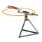 Lanceur de plateaux sur base triangulaire. Lancer simple ou double. Angles réglables en direction et en hauteur. Système de fixation au sol par sardines métalliques. Cerceau orange permettant de visualiser la zone de "rotation du bras". Tension du ressort principal réglable.