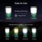La lanterne dispose de 4 modes d'éclairage: blanc froid (6000K, 700 lumens, 8 heures), blanc chaud (3000K, 300 lumens, 12 heures), blanc lumineux (5000K, 1000 lumens, 6.5 heures) et flash (5000K, 1000 lumens).