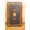 Reliure en cuir brun à décor estampé d'un médaillon doré orné de fleurs de pavots, bordé par une frise de cartouches à décor floral.