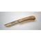 Belle finition du manche (beau bois, bien ajusté) et des parties métalliques, sauf la lame (!) dont l'affutage est irrégulier (photos disponibles à demande), mais qui coupe cependant très bien. Espérons que c'est un cas particulier. Couteau propre à l'usage mais les reflets irréguliers sur la lame sont vraiment pénibles à voir.