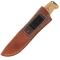 Longueur totale (mm) : 226 Longueur de la lame (mm) : 102 Largeur de la lame (mm) : 34 Épaisseur de la lame (mm) : 3.5 Matériau de la lame : 80CRV2 Matériau du manche : Frêne Système : Fixe Plate Semelle Type d'étui : Etui de ceinture en cuir Poids (g.) : 170 Pays d'origine : France