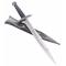 Magnifique replique de l'epee Sting de Frodon sous forme de dague tiree du film "Le Seigneur des anneaux". La lame en acier non coupante avec des ecritures elfiques. Longueur totale : 37cm Longueur de la lame : 25cm Poids epee et fourreau : 380grs Poids epee : 227grs Livre avec son fourreau en ABS.