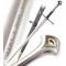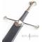 Magnifique replique de l'epee Anduril ou "la flamme de l'ouest", portee par le roi Elessar dans la trilogie "Le seigneur des anneaux". La lame affutee en acier stainless steel 440. Lame gravee d'ecriture elfique au niveau de la gorge. Superbe Epee Aragorn, Epee le Seigneur des Anneaux. Longueur totale de l'epee dans son fourreau : 132cm Longueur epee sans fourreau : 120,5cm Longueur de la lame: 89cm Poids epee : 1930grs Poids epee et fourreau : 2500grs Epee non concus pour les combats.