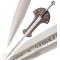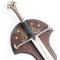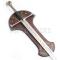 Magnifique réplique de " L'ANDURIL" ou "la flamme de l'ouest", portée par le roi Elessar dans la trilogie "Le seigneur des anneaux". Epée appartenant a Aragorn. La lame en acier stainless steel 440, pré-affutée mais non tranchante, est gravée d'écriture elfique au niveau de la gorge. Le pommeau gravé ainsi que la garde ont des finitions superbes. La manche est en imitation cuir pour une meilleure prise de main. Le support mural en bois décoré est livré avec l'épée. Sublime pièce de collection.