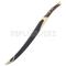 Sublime et élégante reproduction du sabre d'Arwen ""Le Hadhafang"" qui signifie le défenseur. Ce sabre est inspiré directement du film ""Le Seigneur des anneaux"". La magnifique lame courbée est finement travaillée et ornée d'écritures elfiques dorées. Le manche en imitation bois d'acacia est décoré d'arabesques couleur or, ornement métal doré. Le noble fourreau en bois est recouvert d'un simili cuir marron avec des extrémités en métal. Très belle pièce de collection.