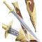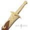 La lame en bois est biseautee, des ecritures elfiques imprime la decorent richement.