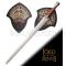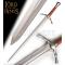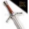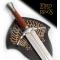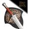 Superbe reproduction de l'épée utilisé par Boromir dans la trilogie ""Le seigneur des anneaux"". La lame en acier stainless steel 440, pré-affutée mais non tranchante avec gorge. Poignée en ABS. Manche en imitation bois. Garde et pommeau en acier. Support murale en bois richement décoré fournis.