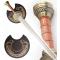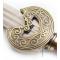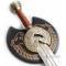 Magnifique replique de l'epee de l'honorable roi du rohan Theoden, inspiree du film "Le Seigneur des anneaux". La lame en acier est pre-affutee mais non tranchante. Elle possède une double gorge en son milieu. Le pommeau façon bronze vieilli, est très finement travaille. Le manche imitation bois d'acacia est royal. Superbe epee refletant a merveille l'esprit de ce monarque. Le support mural en bois decore est livre avec l'epee. Finitions parfaites. Longueur de la lame : 72cm Longueur totale : 89cm Vente interdite aux mineurs.