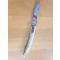 Manche corne blonde. Occasion mais état absolument parfait, jamais utilisé. Mitres laiton. Cran forcé. Poncetage. Lame 9,5cm , longueur totale 21cm. Livré avec étui cuir de très belle facture.