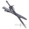 Lame en acier noire non tranchante ornee d'un symbole a sa base.
