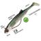 Le Sodium Tex'Shad présente une silhouette allongée très imitative et sa petite nageoire caudale, en paddle, se met en action à la moindre sollicitation. Que ce soit à faible vitesse de récupération ou lors des phases de descente avec la bannière tendue, les vibrations de cette nageoire le rendent incroyablement vivant et particulièrement attractif.