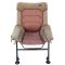 Avec des dimensions optimisées (dossier de 75 cm de haut et 75 cm de large, pieds réglables de 33 à 50 cm), et un encombrement réduit une fois plié (75 x 75 x 18 cm), ce siège est aussi robuste que compact. Son poids de 6,7 kg en fait un excellent compromis entre confort, stabilité et mobilité.