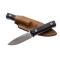 Le B40 est équipé d'une lame en acier Sleipner lavé à la pierre, idéale pour la sculpture sur bois, entre autres. La poignée fraisée offre une excellente prise en main. Pour un look plus traditionnel, le manche est disponible en bois de santos ou en bois d'olivier, tandis que pour un style plus technique, il existe les versions Micarta et G10, la dernière étant disponible en deux couleurs : noir et orange.