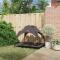 Lit pour Chien Marron 122 x 93 x 106,5 cm AcierLe lit pour chien surélevé Modern Pet est le combo parfait de style et de praticité pour votre meilleur pote. Avec sa forme rectangulaire moderne et ses lignes épurées, il s'intègre facilement dans n'importe quelle maison et ajoute une touche stylée. Pensé pour les chiens, ce lit se déplace facilement entre l'intérieur et l'extérieur, s'adaptant à tout type de salon, jardin ou terrasse. Il offre à votre chien un endroit confortable pour se prélasser et rendre son temps de repos encore mieux. Matériaux : Fabriqué en acier durable, ce lit pour chien est solide et résiste à toutes les conditions, à l'intérieur comme à l'extérieur. Facile à entretenir, ce qui vous laisse plus de temps à passer avec votre compagnon à fourrure. Son design moderne s'harmonise facilement avec tous les styles d'intérieur. Composants inclus : Le paquet contient un cadre en acier robuste qui améliore le confort de repos de votre chien. Non seulement c'est beau, mais ça leur permet d'avoir une meilleure vue et une circulation d'air optimale sous le lit. La plateforme surélevée éloigne les chiens du sol, offrant un coussin confortable et bien supporté toute l'année. Fonctionnalités / Fonction / Design : Ce lit pour chien s'adapte aussi bien à l'intérieur qu'à l'extérieur. Son design moderne et minimaliste est super pratique et très esthétique. Conçu pour être fonctionnel, il s'intègre parfaitement dans les salons ou les jardins, permettant ainsi aux animaux et à leurs propriétaires de profiter du style et du confort. La conception surélevée est particulièrement utile pour les grandes races qui ont besoin de plus de soutien pour leurs articulations. Utilisations recommandées : Parfait pour se dorer au soleil dans le jardin, se relaxer sur la terrasse ou se reposer dans le salon, ce lit pour chien est un must-have pour les propriétaires qui recherchent style et polyvalence. Son mélange de design et de fonctionnalité fait de n'importe quel endroit un espace adapté aux animaux, idéal pour les chiens de toutes tailles et âges. Entretien et maintenance : L'acier résistant demande peu d'entretien, mais un nettoyage régulier le garde comme neuf. Un coup d'éponge avec un chiffon sec élimine la poussière. Si vous l'utilisez à l'extérieur, rangez-le à l'intérieur pendant les intempéries pour prolonger sa durée de vie. Ces conseils d'entretien garantissent que le lit reste un accessoire stylé toute l'année, offrant un confort continu à votre animal.