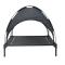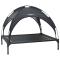 Lit pour Chien Noir 90 x 81 x 80,5 cm AcierCe lit pour chien surélevé est le spot parfait pour vos compagnons à quatre pattes. Pensé pour être stylé et pratique, il se place facilement que ce soit dans le jardin, sur la terrasse, dans le salon ou même dans la chambre. Avec son design moderne et ses caractéristiques pratiques, il offre une belle élévation. Idéal pour les chiens qui aiment se détendre tant à l'intérieur qu'à l'extérieur, il rajoute une touche d'élégance à vos accessoires pour animaux. Que ce soit sous un abri dans le jardin ou à côté de votre canapé, ce lit répond à tous leurs besoins de confort et de sécurité. Construction solide : Fabriqué en acier robuste, ce lit a un cadre résistant qui tient bien face aux intempéries. Cette durabilité s'associe à une surface en polyester qui assure confort tout en résistant aux griffes et morsures des animaux. Résistant aux intempéries : Conçu pour l'extérieur, chaque composant est soigneusement choisi pour supporter la pluie, les UV et le vent. La combinaison de ses matériaux et son design réfléchi gardent votre animal bien au sec et à l'aise toute l'année. Auvent amovible : L'auvent detachable apporte de l'ombre, offrant à votre animal un coin fraicheur loin du soleil direct. L'ajustement ou le retrait de l'auvent est très simple, vous permettant de l'adapter selon la météo et votre emplacement. Facile à déplacer : Avec son poids léger, déplacer ce lit est un jeu d'enfant, que ce soit d'une pièce à l'autre ou dans le jardin. Sa capacité à se plier le rend facile à ranger, tout en étant super pratique pour les déplacements. Simple à entretenir : Garder cet endroit préféré de votre animal propre est facile. Un coup de chiffon humide suffit pour le bichonner, conservant ainsi son look moderne, sans effort.