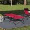 Lit de camping pliant Rouge 206 x 76 x 74 cm Oxford et acierCe lit de camping pliant, avec son design simple, apporte praticité et confort pour toutes vos aventures en plein air. Idéal pour les fans de camping, sa forme rectangulaire s'adapte à tout espace extérieur comme le jardin ou la terrasse. Fait pour offrir un confort optimal, son tissu résistant à l'eau vous protège des mauvais temps. Sa capacité à se plier fait de lui un compagnon de voyage idéal, vous garantissant un endroit de repos sans prendre trop de place. Construction en Oxford et en acier : Ce lit combine un tissu Oxford robuste et de l'acier, garantissant durabilité et un look élégant pour toutes vos sorties. Ces matériaux résistent aux intempéries et assurent une longue durée de vie. Pliable pour un stockage facile : Grâce à son design pliable, ce lit se transforme facilement entre utilisation et rangement. Que vous vous déplaciez souvent ou que vous ayez peu d'espace de stockage, c'est la solution pour un montage rapide et une portabilité optimale. Caractéristiques résistantes aux intempéries : Avec sa construction étanche, ce lit de camping vous protège de l'humidité. Parfait pour le camping par tous les temps, il assure un sommeil sec et confortable même en cas de pluie. Pieds en acier solides : Avec son cadre en acier robuste, ce lit offre un excellent soutien. Les pieds solides assurent la stabilité, super pour le jardin ou la terrasse, créant ainsi un environnement de repos agréable. Ajustement manuel pour le confort : En plus de ses autres points forts, ce lit propose des réglages manuels pour que chacun puisse personnaliser son confort sans outils. Idéal pour s'adapter à vos préférences et garantir un moment de détente sur mesure. Bon à savoir : Maximum 110 kg par siège.
