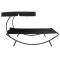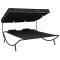 Lit de repos d'extérieur avec auvent et oreillers NoirCe lit de bronzage double, comprenant 2 oreillers et un grand auvent, attirera tous les regards partout où il sera placé. C'est un choix parfait pour la détente, ou pour vous amuser avec votre famille dans le jardin, dans la cour, sur le patio ou sur la plage. Fabriqué en oxford résistant aux intempéries, le transat peut être utilisé à l'extérieur toute l'année. Les cadres en acier enduit de poudre apportent une super stabilité et une excellente durabilité. Les oreillers et l'auvent, en polyester hydrofuge, offriront sans aucun doute une expérience de couchage optimale. Le transat d'extérieur pour deux personnes vous offre de l'ombre grâce à son grand auvent. Remarque : afin de prolonger la durée de vie des meubles d'extérieur, nous vous recommandons de les protéger avec une housse imperméable.