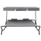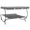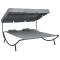 Lit de repos d'extérieur avec auvent et oreillers grisCe lit de bronzage double, comprenant 2 oreillers et un grand auvent, attirera tous les regards partout où il sera placé. C'est un choix parfait pour la détente, ou pour vous amuser avec votre famille dans le jardin, dans la cour, sur le patio ou sur la plage. Fabriqué en oxford résistant aux intempéries, le transat peut être utilisé à l'extérieur toute l'année. Les cadres en acier enduit de poudre apportent une super stabilité et une excellente durabilité. Les oreillers et l'auvent, en polyester hydrofuge, offriront sans aucun doute une expérience de couchage optimale. Le transat pour deux personnes vous offre de l'ombre grâce à son grand auvent. Le transat est facile à monter. Remarque : afin de prolonger la durée de vie des meubles d'extérieur, nous vous recommandons de les protéger avec une housse imperméable.