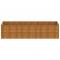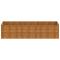 Lit surélevé de jardin 290x100x69 cm acier cortenCe lit surélevé de jardin serait idéal pour les amateurs de bricolage pour décorer vos jardins, balcons ou patios. Matériau durable : acier corten, également connu sous le nom d'acier patinable. Cet acier est anti-corrosif par nature. Il développe une couche protectrice contre la corrosion dès sa première exposition aux conditions atmosphériques. Il n'est donc pas nécessaire de le peindre. Cela peut vous aider à économiser sur les coûts d'entretien et de réparation. La couleur marronne distinctive de l'acier corten attirera sûrement tous les regards. Enfin, l'acier résistant aux intempéries est exceptionnellement durable et résiste à l'épreuve du temps.Grand espace : la jardinière est suffisamment profonde et large pour contenir une grande quantité de terre et offre suffisamment d'espace pour vos plantes, légumes, herbes et fleurs.Support supplémentaire : les supports intérieurs du lit surélevé assurent robustesse et stabilité.Pliage sûr des bords : le bord du pot de jardin a un design plié, donc aucun bord tranchant dangereux n'est exposé.Fonction décorative : le bac à fleurs peut contenir vos plantes ou fleurs préférées, ce qui est idéal pour votre jardin comme décoration. Bon à savoir :Ce produit n'est pas encore rouillé et a une couleur métallique normale lorsque vous le recevez, mais la rouille se développera au fil du temps. Vous pourriez accélérer le processus de rouille en le pulvérisant avec de l'eau savonneuse et de l'eau salée. Pour que vos vêtements ne soient pas tachés, évitez tout contact avec la couche de rouille qui se développe.