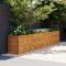 Lit surélevé de jardin 385x50x69 cm acier cortenCe lit surélevé de jardin serait idéal pour les amateurs de bricolage pour décorer vos jardins, balcons ou patios. Matériau durable : acier corten, également connu sous le nom d'acier patinable. Cet acier est anti-corrosif par nature. Il développe une couche protectrice contre la corrosion dès sa première exposition aux conditions atmosphériques. Il n'est donc pas nécessaire de le peindre. Cela peut vous aider à économiser sur les coûts d'entretien et de réparation. La couleur marronne distinctive de l'acier corten attirera sûrement tous les regards. Enfin, l'acier résistant aux intempéries est exceptionnellement durable et résiste à l'épreuve du temps.Grand espace : la jardinière est suffisamment profonde et large pour contenir une grande quantité de terre et offre suffisamment d'espace pour vos plantes, légumes, herbes et fleurs.Support supplémentaire : les supports intérieurs du lit surélevé assurent robustesse et stabilité.Pliage sûr des bords : le bord du pot de jardin a un design plié, donc aucun bord tranchant dangereux n'est exposé.Fonction décorative : le bac à fleurs peut contenir vos plantes ou fleurs préférées, ce qui est idéal pour votre jardin comme décoration. Bon à savoir :Ce produit n'est pas encore rouillé et a une couleur métallique normale lorsque vous le recevez, mais la rouille se développera au fil du temps. Vous pourriez accélérer le processus de rouille en le pulvérisant avec de l'eau savonneuse et de l'eau salée. Pour que vos vêtements ne soient pas tachés, évitez tout contact avec la couche de rouille qui se développe.