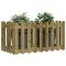 Lit surélevé de jardin design de clôture bois de pin imprégnéCe lit surélevé de jardin en bois est un excellent choix pour cultiver une variété de fleurs ou de plantes. Bois imprégné : le bois de pin massif est un matériau naturel magnifique. Le bois de pin a un grain droit et les noeuds lui confèrent un aspect rustique caractéristique. L'imprégnation est un processus de conservation réalisé à l'aide d'autoclaves. Le traitement sous pression augmente la résistance à la pourriture et aux intempéries.Espace suffisant : ce lit surélevé est suffisamment profond et large pour contenir une grande quantité de terre, offrant ainsi suffisamment d'espace pour vos plantes et fleurs.Fonction polyvalente : vous pouvez utiliser ce lit de jardin pour accueillir directement vos plantes et fleurs préférées, ou pour recouvrir un pot de fleurs en plastique pour une plus belle apparence.