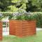 Lit surélevé de jardin rouillé 100x100x77 cm acier cortenCe lit surélevé en acier corten est un excellent choix pour les amateurs de bricolage pour décorer leurs jardins, balcons ou patios. Matériau durable : acier corten, également connu sous le nom d'acier patinable. Cet acier est anti-corrosif par nature. Il développe une couche protectrice contre la corrosion dès sa première exposition aux conditions atmosphériques. Il n'est donc pas nécessaire de le peindre. Cela peut vous aider à économiser sur les coûts d'entretien et de réparation. La couleur marronne distinctive de l'acier corten attirera sûrement tous les regards. Enfin, l'acier résistant aux intempéries est exceptionnellement durable et résiste à l'épreuve du temps.Grand espace : la jardinière est suffisamment profonde et large pour contenir une grande quantité de terre et offre suffisamment d'espace pour vos plantes, légumes, herbes et fleurs.Cadre robuste : le cadre en acier et les supports intérieurs du lit surélevé garantissent robustesse et stabilité.Fond ouvert : Le design sans fond permet un bon drainage des plantes et empêche l'accumulation d'eau qui fait pourrir les racines des plantes. Cela permet également aux plantes de mieux absorber les nutriments. Tu peux le placer sur de la terre, de l'herbe ou du béton.Pliage sûr des bords : le bord du pot de jardin a un design plié, donc aucun bord tranchant dangereux n'est exposé. Bon à savoir :Ce produit n'est pas encore rouillé et a une couleur métallique normale lorsque vous le recevez, mais la rouille se développera au fil du temps. Vous pourriez accélérer le processus de rouille en le pulvérisant avec de l'eau savonneuse et de l'eau salée. Pour que vos vêtements ne soient pas tachés, évitez tout contact avec la couche de rouille qui se développe.Pour faciliter au maximum le montage, chaque produit est livré avec des instructions.