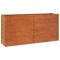 Lit surélevé de jardin rouillé 160x40x77 cm acier cortenCe lit surélevé en acier corten est un excellent choix pour les amateurs de bricolage pour décorer leurs jardins, balcons ou patios. Matériau durable : acier corten, également connu sous le nom d'acier patinable. Cet acier est anti-corrosif par nature. Il développe une couche protectrice contre la corrosion dès sa première exposition aux conditions atmosphériques. Il n'est donc pas nécessaire de le peindre. Cela peut vous aider à économiser sur les coûts d'entretien et de réparation. La couleur marronne distinctive de l'acier corten attirera sûrement tous les regards. Enfin, l'acier résistant aux intempéries est exceptionnellement durable et résiste à l'épreuve du temps.Grand espace : la jardinière est suffisamment profonde et large pour contenir une grande quantité de terre et offre suffisamment d'espace pour vos plantes, légumes, herbes et fleurs.Cadre robuste : le cadre en acier et les supports intérieurs du lit surélevé garantissent robustesse et stabilité.Fond ouvert : Le design sans fond permet un bon drainage des plantes et empêche l'accumulation d'eau qui fait pourrir les racines des plantes. Cela permet également aux plantes de mieux absorber les nutriments. Tu peux le placer sur de la terre, de l'herbe ou du béton.Pliage sûr des bords : le bord du pot de jardin a un design plié, donc aucun bord tranchant dangereux n'est exposé. Bon à savoir :Ce produit n'est pas encore rouillé et a une couleur métallique normale lorsque vous le recevez, mais la rouille se développera au fil du temps. Vous pourriez accélérer le processus de rouille en le pulvérisant avec de l'eau savonneuse et de l'eau salée. Pour que vos vêtements ne soient pas tachés, évitez tout contact avec la couche de rouille qui se développe.Pour faciliter au maximum le montage, chaque produit est livré avec des instructions.