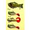 Lot: 1 leurre dur articulé 15 gr + 3 leurres souples 9 gr.