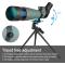 Avec un grossissement réglable de 20x à 60x, cette longue-vue permet d’observer les moindres détails avec précision. Idéale pour la chasse, le tir à la cible, le tir à l’arc, l’observation des oiseaux et des animaux, la randonnée, le camping, les paysages, les sports de plein air et même l’astronomie.
