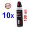 Tenir la bombe lacrymogène verticalement bras allongé, diriger le diffuseur en direction de l'agresseur et presser ardemment.