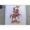 Il est coiffé du colback à flamme écarlate et plumet rouge et vert et porte sa pelisse rouge à brandebourgs dorés "chaussée" sur le dolman. Il porte son mousqueton à la banderole. Il est figuré sur sa monture qui porte une schabraque verte à galon aurore avec aigle impériale. Il brandit un étendard de cavalerie autrichien conquis lors de la plus célèbre bataille de l'épopée napoléonienne.