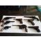 Pistolets mini répliques en lot de 15 pièces. Smith et Wesson chief spécial, Colt Frontier, Smith et Wesson 44 magnum, Walther P38, Tokarev TTM 1933, Remington new model 44, Mauser 7.63, Luger P08, Berretta 934, Bodéo 70 89, colt auto 45, Nagant 7.62, SIG P 210, Steyr M07, Nambu Tipo. Dimension moyenne de 6 à 9 cm. Certains pistolets ne tirent pas. Envoi rapide et soigné. Pour l'international choisissez autre mode d'envoi international pour un Mondial relay en Europe.