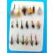 Assortiment généraliste de 19 mouches, conçu pour la pêche de la truite, du chevesne et de la carpe. Montage sur hameçons de tailles #12 et #14, de type sans ardillon (Barbless).