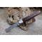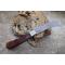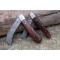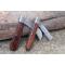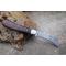 La serpette : Longueur fermé 10cm - Longueur ouvert 18cm - Platines du manche en nickel - Mitres du manche en nickel - Plaquettes du manche en bois - Lame en damas 128 couches - Lame de type serpette - Les dessins de la lame sont comme une empreinte, ils sont uniques - Fabrication artisanale - Ouverture à 2 mains - Système à cran forcé