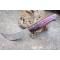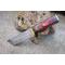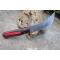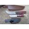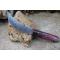 Le little Scinner mesure : 15cm - Longueur de lame : 7.5cm - Lame en acier damas 256 couches - Dos de la lame guilloché - Lame de type tanto - Manche bois - Garde et pommeau en laiton - Etui cuir