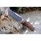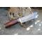 Le little Scinner mesure : 15cm - Longueur de lame : 7.5cm - Lame en acier damas 256 couches - Dos de la lame guilloché - Lame de type tanto - Manche bois - Garde et pommeau en laiton - Etui cuir