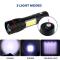 La lampe de poche LED dispose de 3 modes d'éclairage : fort/flash/COB. Selon vos besoins, la tête de lampe de poche rétractable ajuste la mise au point pour définir la zone d'éclairage souhaitée. Conception étanche IPX5