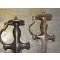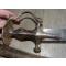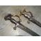 lot de deux sabres indo-persans de type talwar. Monture en fer avec garde à oreilles à une branche et pommeau à disque. Lames courbes à dos plat, en bon état mais finition moyenne. Deux modèles distincts, l’un avec un pommeau légèrement mobile.